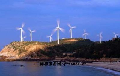 风力发电站,耸立在东山岛最高峰苏峰山南麓的澳仔山。从海滨环岛旅游公路进入冬古村,一条宽敞的水泥路从山下盘旋到山头。沿途可以观看充满田园风光的农家村落和青翠欲滴的芦笋园,可以探访郑成功战船沉船遗址——冬古港,此外,你还可以看到一帧蓝天碧水、白沙绿树与大风车交织的水墨画。
