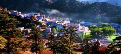 五当召,蒙古语“五当”意为“柳树”;原名巴达嘎尔召,藏语“巴达嘎尔”意为“白莲花”,“召”为“庙宇”之意。始建于清康熙年间(公元1662年—1722),乾隆十四年(公元1749年)重修,赐汉名广觉寺。第一世-罗布桑加拉错以西藏扎什伦布寺为蓝本兴建,经过康熙、乾隆、嘉庆、道光、光绪年间的多次扩建,逐步扩大始具今日规模。-因召庙建在五当沟的一座叫做敖包山的山坡上,所以通称其名五当召。五当召依地势面南而建。有大小殿宇、经堂、僧舍2500余间,占地300多亩,分布在1.5公里长的山坡上。它是一幢层层依山垒砌的白色建筑,群山环绕,为苍松翠柏掩映,雄浑壮观。