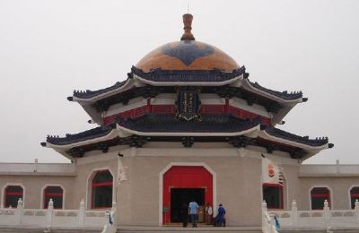 成吉思汗庙融蒙、汉、藏三个民族的建筑风格于一体,采取古代汉族建筑中惯用的中轴对称布局手法,建筑主体圆顶方身,绿帽白墙,具有典型的蒙、藏建筑特色。
