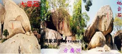 东山景点繁多,而曲水流觞、方广洞、栖云石、桐荫亭、聚圣塔、望仙桥、七星石、五雷坛八景最为脍炙人口。